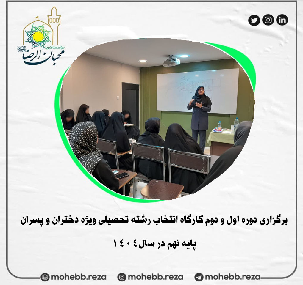 دوره اول و دوم کارگاه انتخاب رشته تحصیلی با هدف کمک به محصلین پایه نهم در فرایند انتخاب رشته ای اگاهانه،واقع بینانه و مبتنی بر شناخت صحیح از توانمندی ها،علایق و مسیر های اینده ی تحصیلی و شغلی  با حضور ۱۷ نفر از دختران و ۶ نفر از پسران به صورت مجزا  در مرداد ماه در سالن ۵  برگزار گردید.