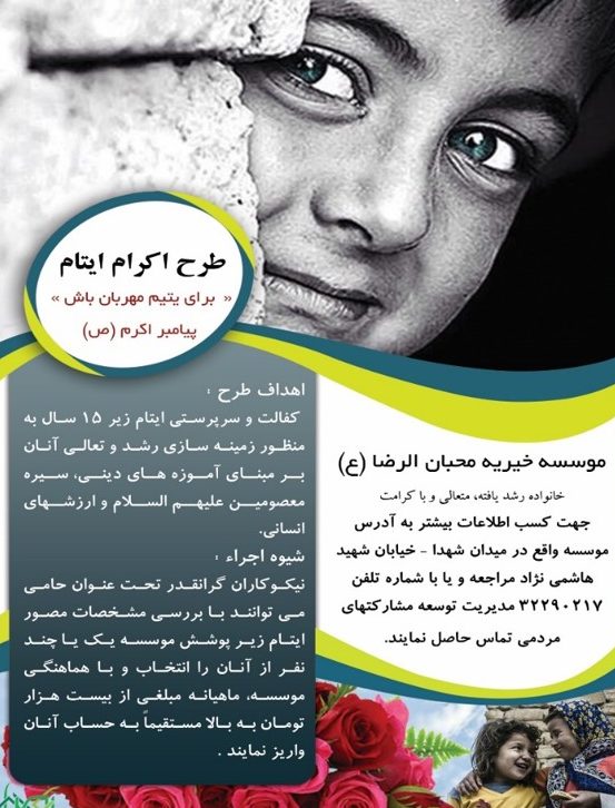 به یاد مهر بیپایان امام رضا(ع)، دستهای گرم شما میتواند چراغ خانهای خاموش را روشن کند. در میان خانوادههایی که چشم به راه مهربانیاند، کودکان یتیمی هستند که با لبخند شما به زندگی امیدوار میشوند. امروز، قطرهای از دریای محبتتان را به ایتام تحتپوشش خیریه محبّانالرضا (ع) ببخشید تا دعای خیرشان همیشه بدرقه راهتان باشد.