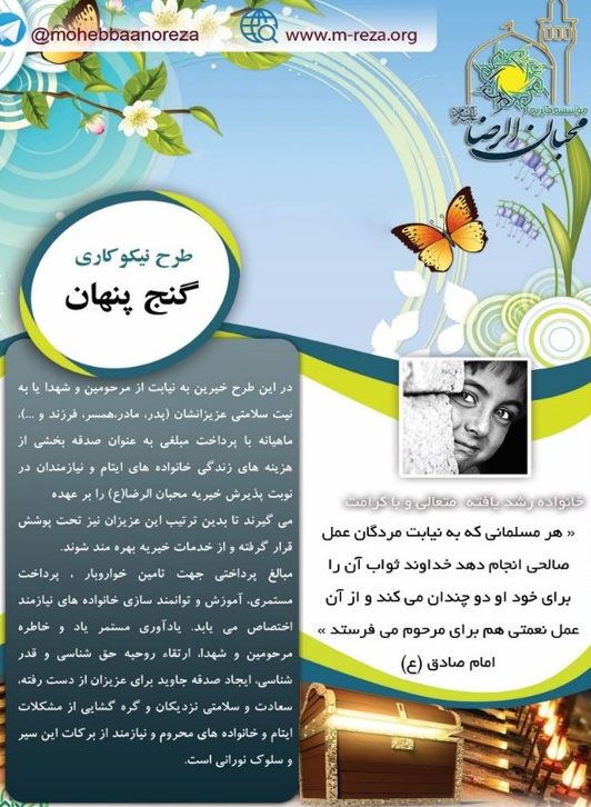 با شرکت در طرح «گنج پنهان» یاد عزیزان درگذشته را جاودانه میکنید. این صدقه جاریه برای کمک به خانوادههای نیازمند هزینه میشود.