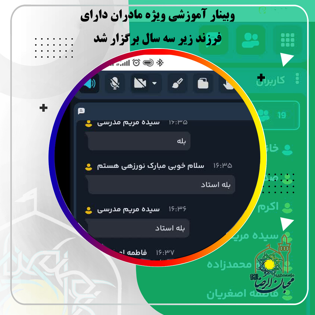 در تاریخ ۳۱ شهریور ۱۴۰۴، وبینار تخصصی با موضوع «تأخیر در مهارتهای کلامی و حرکتی» ویژه مادران دارای فرزند زیر سه سال، در محیط اسکایروم برگزار گردید.