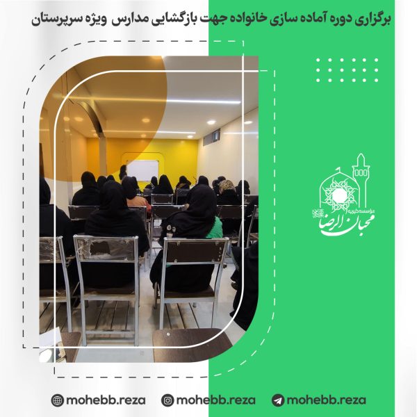 برگزاری دوره آماده سازی خانواده جهت بازگشایی مدارس Mohebbanrezaآبان 12, 1403دوره آماده سازی خانواده جهت بازگشایی مدارس با هدف آگاهی بخشی به مادران در خصوص بهبود و ... ادامه مطلب
