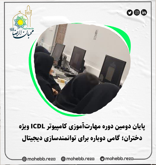 پایان دومین دوره مهارتآموزی کامپیوتر ICDL ویژه دختران؛ گامی دوباره برای توانمندسازی دیجیتالMohebbanrezaتیر 8, 1404در پی استقبال چشمگیر و رضایتبخش از نخستین دوره ICDL، دومین دوره آموزش مهارتهای کامپیوتری ویژه دختران ... ادامه مطلب